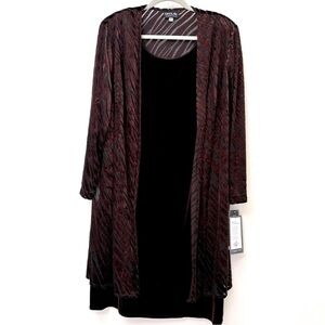 NWT Onyx Nite 2pc Brown Velvet Dress Long Open Velvet Burnout Cardigan Jacket 22