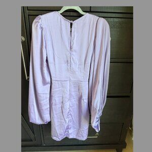 NWT - Opal Tie Waist Long Sleeve Satin Minidress in Lavendar - BY PETAL & PUP