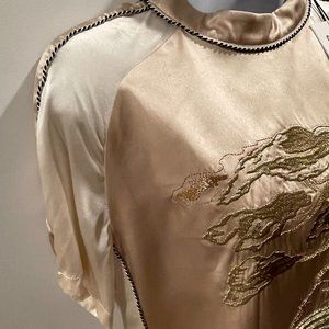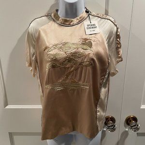 NWT Opening Ceremony Gold Bonsai Embroidered Silk Short Sleeve Tee, Size 4