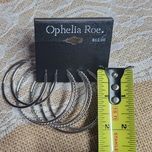 🛒🛍️💥NWT Ophelia Roe 3 pair pierced wire silver tone hoop earrings