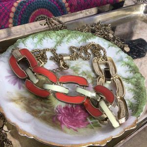 NWT Orange & Cream Necklace Chunky Chain & Interlinked Accents