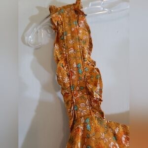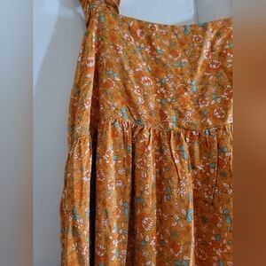 NWT Orange Floral Peasant Maxi Dress. Has ruffle straps and a tie back, umder tie is elastic for comfort. The skirt is tiered. Beautiful for Summer!