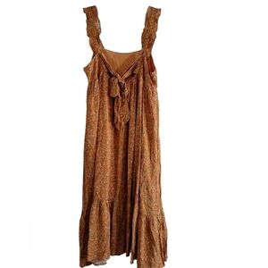 NWT Orange Floral Peasant Dress Large Ruffle Strap Tie Back Tiered Mittoshop