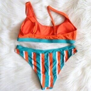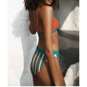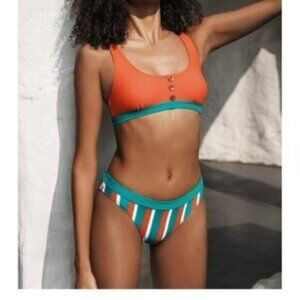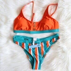 NWT Orange Green Striped Printed Sexy Bikini Set Size Medium Bathing Suit