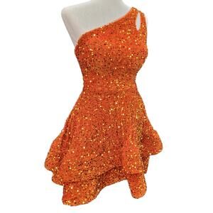 NWT Orange One Shoulder Tank Sequin Short Dress