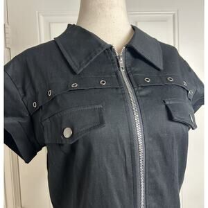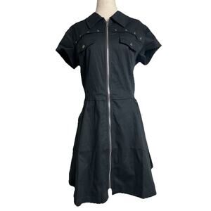 NWT Black zipper shirt dress with silver metal grommet accents and pockets. Goth pinup rockabilly dress.