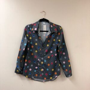 NWT Order Plus Gray and Colorful Polka Dot Button Down Top Size Large