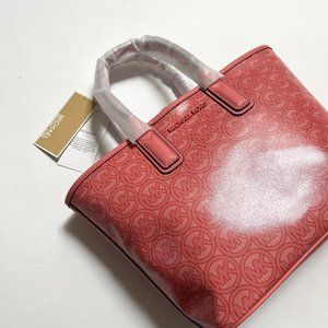 NWT Original Michael Kors Jodie Small Logo Jacquard Tote Bag Grapefruit Pink