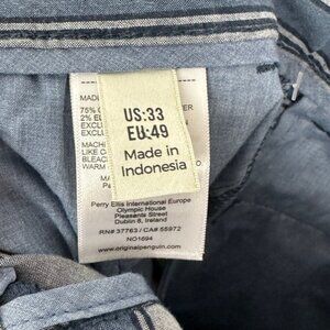 Original Penguin Blue Striped Slim Fit Chino Shorts in Men's Size 33. Zipper fly with button clOne Sizeure. Slant pockets. Belt loops. 75% cotton, 23% poly and 2% elastane. Machine washable. Made in Indonesia. Brand new with tags! No flaws.