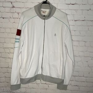 NWT Original Penguin Men's White Long Sleeve Zip Up Logo Jacket Size L.