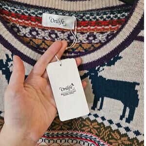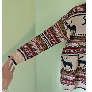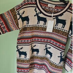 NWT! Orilife Oversized Baggy Beige Cotton & Wool Blend Reindeer Sweater