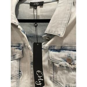 NWT / Orly / Boutique Distressed Light Denim Jacket with Bead Accents