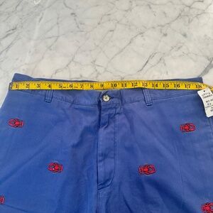 NWT Orvis Twill Embroidered Shorts in Blue with Red Lobsters Embroidered on the shorts.