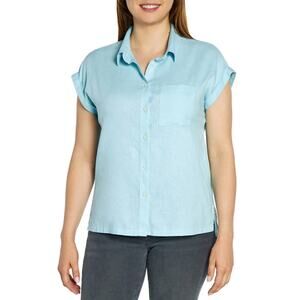 NWT Orvis Women's Button Front Short Sleeve Linen Blend Shirt