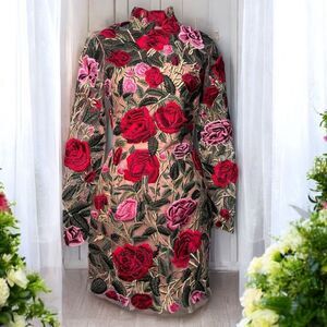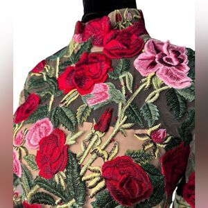 New with tags and an absolute stunner of a dress! Hand sewn floral embroidery all over, silk interior lining. No stretch in material, size 4 but does run a little small. Made in USA.