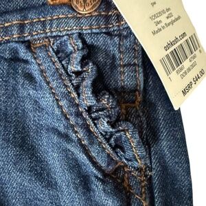 NWT OshKosh B’gosh Blue Denim Overalls Ruffle Trim & Buffalo Plaid Cuff 24M