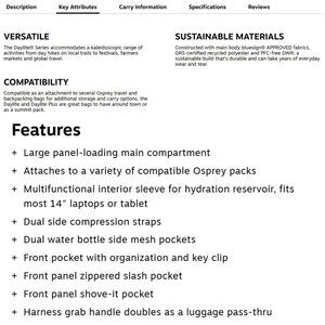 Can be attached to compatible Osprey backpacks for added storage.