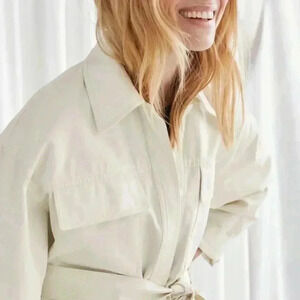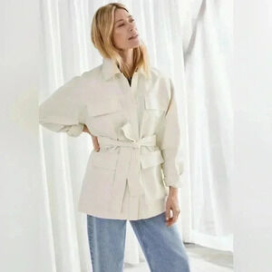 NWT & Other Stories Ivory Belted Cotton Jacket 100% Cotton Oversized Size S