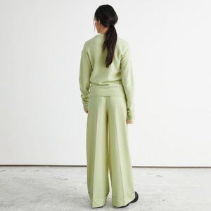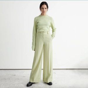 NWT & Other Stories Womens Wide Press Crease Wool Trousers in Pistachio