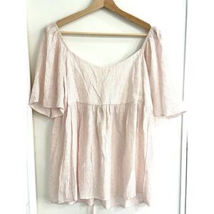 NWT Ott Pink and White Striped Peasant Top w/ Flutter Sleeves / Sz L / boutique