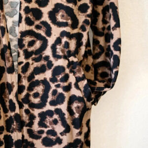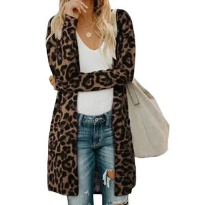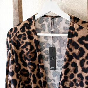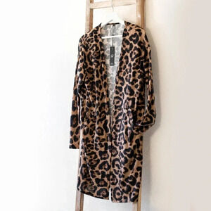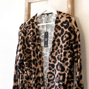 NWT Ouges Cardigan Sz L Leopard Print Tan Black Open Front Long Sleeves Pockets