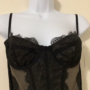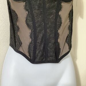 Out by Under by Urban Outfitters 2000s Feminine Sexy Goth Romantic Aesthetic Black Brown Sheer Mesh Lace Corset Top