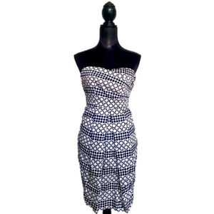 NWT Outback Red Navy and White Geometric Strapless Cocktail Dress Size 0