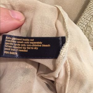 SO cute. Chiffon attached under and shows at the hem. Gold Metallic thread runs thru the knit. Khaki and Gold. No snags. PEt and smoke free.