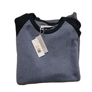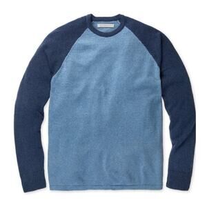 NWT Outerknown Cashmere Sweater Heather/Indigo Reimagine Baseball Raglan! SZ L
