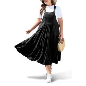 Features: Our womens overall dress, with two side pockets and a chest pocket, is convenient and practical. A-line tiered maxi dress cleverly hide the curves of the midsection. The adjustable shoulder strap design cleverly blends comfort and practicality to provide optimal fit and support. The chest and back folds are designed to modify the curves of the body, these overall dress for women plus size show the beautiful and confidence of women