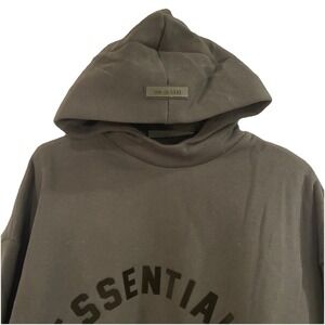 The NWT Fear Of God Essentials Hoodie is a stylish and trendy piece designed for men. This black cotton blend hoodie features long sleeves, a pullover closure, and oversized fit, making it a comfortable and fashionable choice for everyday wear. The arched spell out logo adds a touch of hipster flair, while the fleece fabric gives it a cozy feel. Complete with pockets, this hoodie is perfect for those looking to make a designer statement with their activewear.