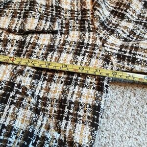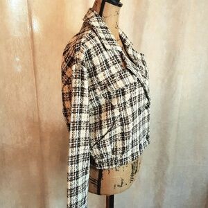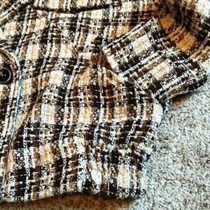 NWT Oversized Boho Crop Jacket Blazer Brown Cream Tweed Metallic Gold Sz S