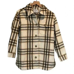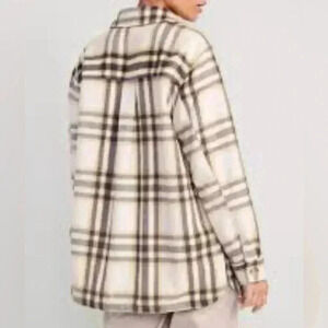 NWT Oversized Old Navy Soft Brushed Plaid Shacket, Size XS, Cream, Black, Tan