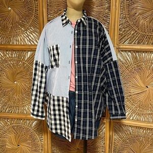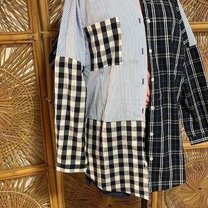 NWT Oversized Plaid Shirt Fashion Nova Mixed Feelings Top Small Striped Baggy