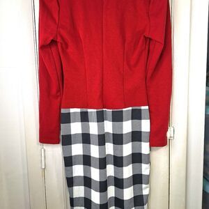 NWT Oxiuli Fashion Red Black Colorblock Checkered Long Sleeve Bodycon Dress Sz M