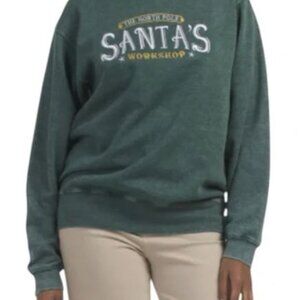 NWT North Pole Green Santa’s Workshop Embroidered Sweatshirt Size S