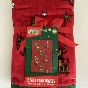 NWT PACK OF TWO GRINCH HAND TOWELS IN RED COLOR 16”x26”
