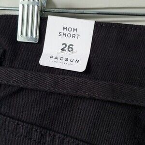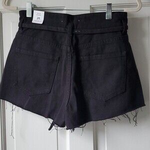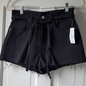 NWT PACSUN BLACK MOM JEAN DENIM SHORTS TIE BELT HIGH WAIST FRAYED BOTTOM SIZE 26