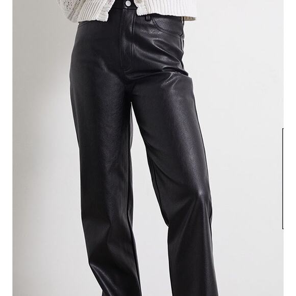 The NWT PacSun Women's Black Leather Faux Wide Leg Pants in size Small with an inseam of 31 inches are a stylish and versatile addition to any woman's wardrobe. Made from faux leather, these wide-leg pants feature a chic black color and a classic wide-leg style that is perfect for any casual or dressy occasion. The regular fit and size make them a comfortable and flattering choice for a range of body types, while the high-quality material ensures durability and longevity.