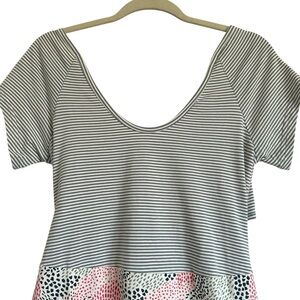 NWT Pact Fit and Flare Cross Back Dress. This cleverly cut dress is classic in the front and flirty in the back. In an amazingly flattering fit and flare silhouette with a contrasting top and bottom pattern; stripes on top and abstract dots on the skirt. Featuring a scoop neck, crossback, breathable organic cotton and elastane material blend, and side pockets.