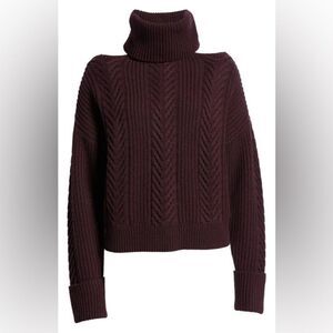 NWT PAIGE Lorilee Turtleneck Cable Knit Wool Blend Sweater in Dark Sangria sz M