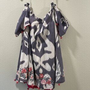 (NWT) PANKAJ & NIDHI (Anthropologie) "Ikat" Off Shoulder Embroidered Mini, L