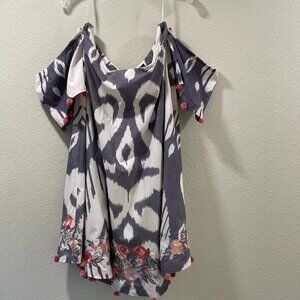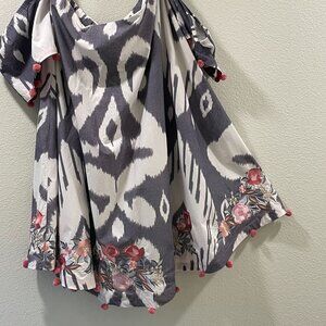* Gorgeous off shoulder mini dress in white/gray with pink, peach & gray embroidery at hem