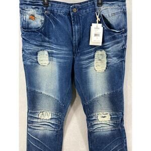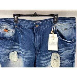 Good Day! I am selling: NWT PARISH NATION Jeans Sz 46 Blue Denim Distressed Faded Ripped Dark Stone Wash