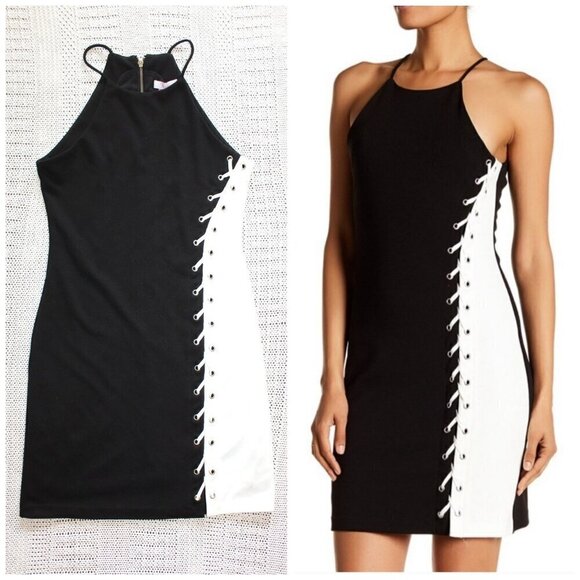 NWT PARKER Black & Ivory Mini Dress Size M Color Block Zip on Sleeveless sexy