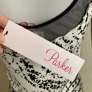 NWT PARKER Silk Blacksplatter Fit & Flare Dress Sleeveless Abstract Pattern M