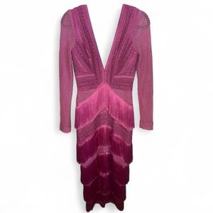 NWT PATBO fuchsia fringe crochet long sleeve dress Cerise pink small | 4