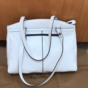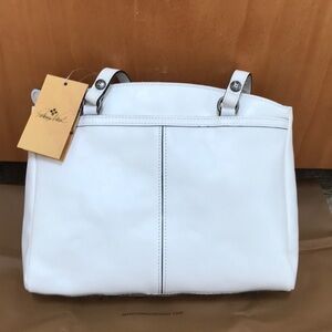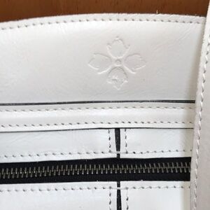 New! Patricia Nash white top zip poppy tore. Top zip with one zip pocket inside with two slip pockets. Two open snap pockets on both sides and one exterior zip pocket. Comes with dust bag. Beautiful