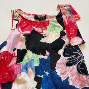 NWT PAULE KA Multicolor Floral Sleeveless Dress Bow on Shoulder Lightweight