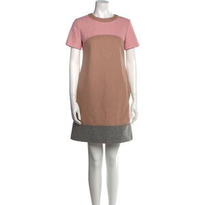 PAULE KA PARIS Pink/Tan Color Block Short Sleeves Virgin Wool Dress Size 6